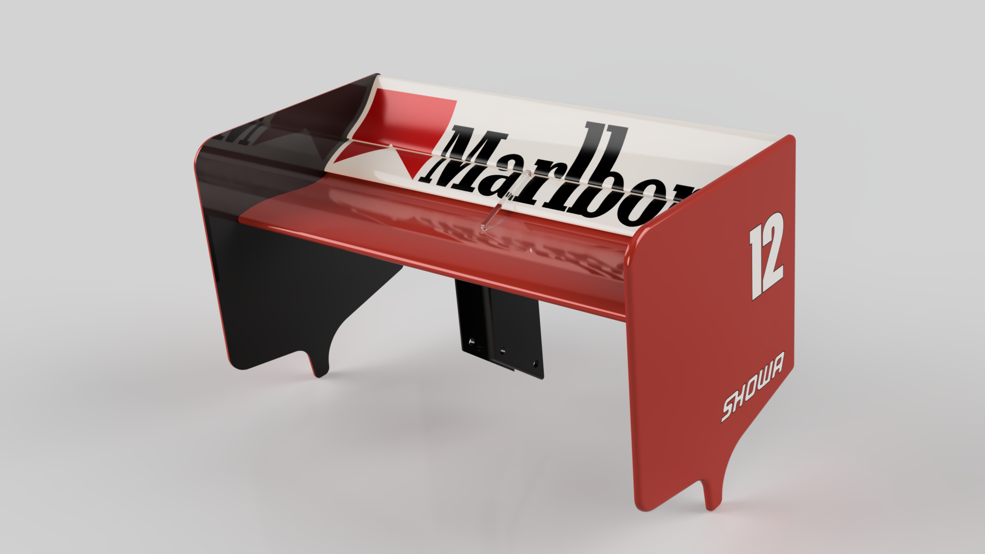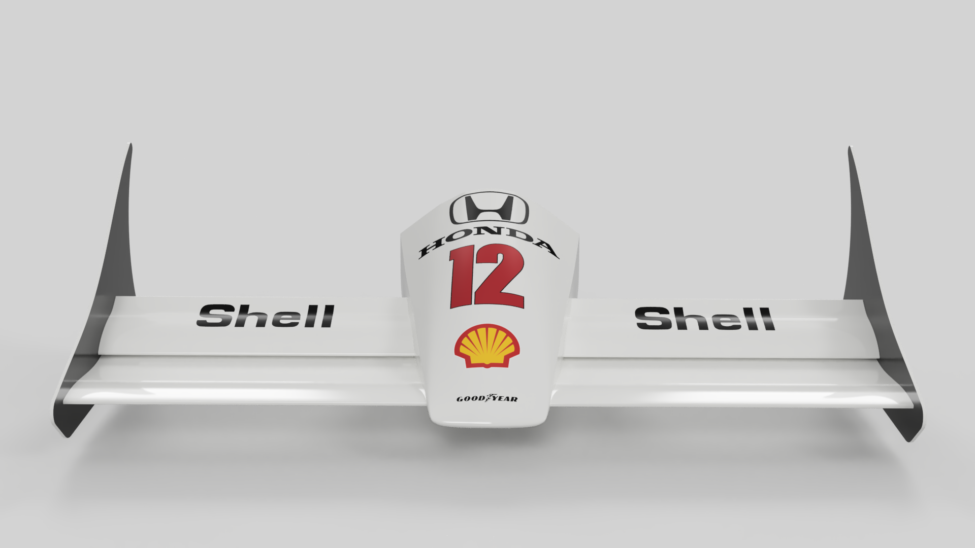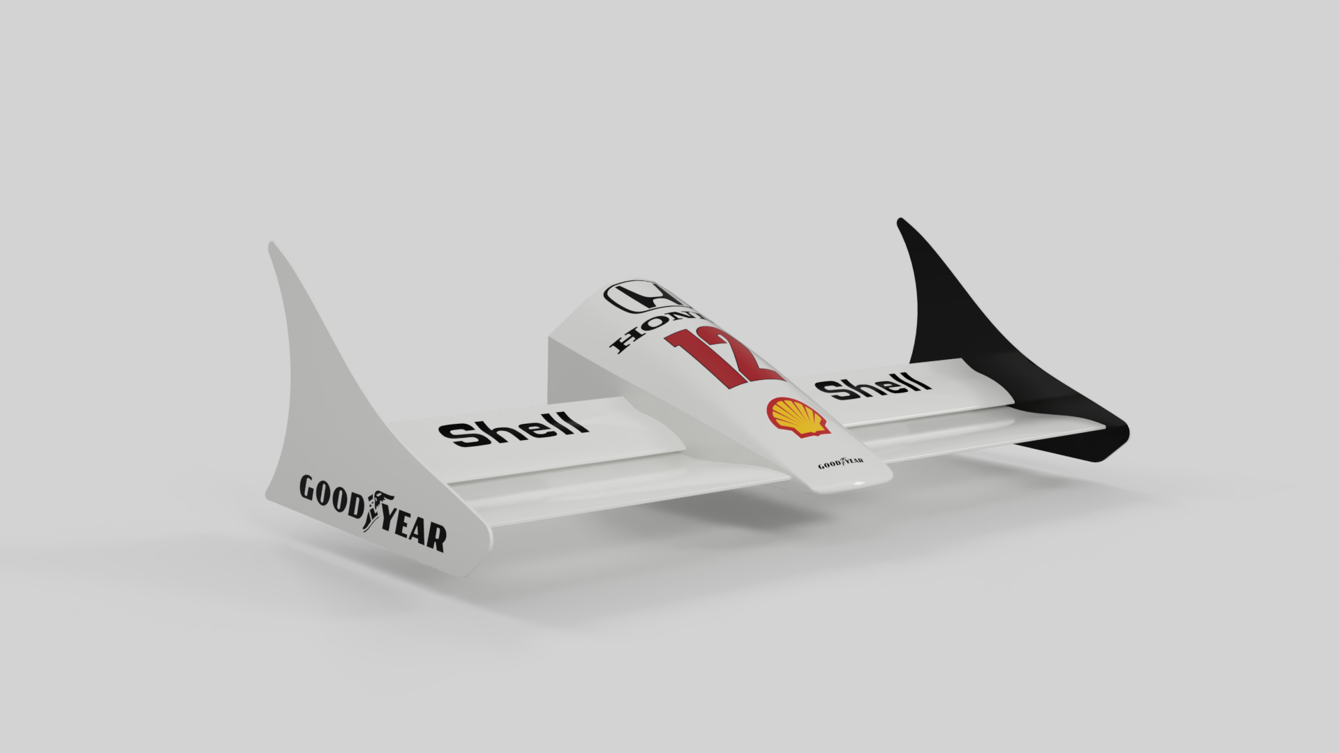 Projeto das asas dianteira e traseira do carro de Formula 1 McLaren-Honda Mp4/4, pilotado por Ayrton Senna em 1988.
